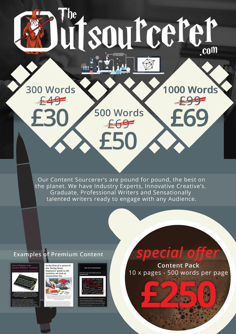 Advert for The Outsourcerer. -